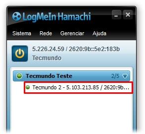 Se todos seguiram os passos do processo corretamente, seu grupo de amigos vai estar listado na mesma sala do Hamachi, como você pode ver na imagem abaixo.