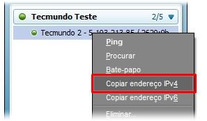 Para isso, você vai precisar, primeiro, encontrar a pessoa que está executando o Minecraft Server em sua lista do Hamachi, clicar com o botão direito e, no menu de contexto, escolher o item “Copiar endereço IPv4”. Se o servidor estiver sendo executado em seu próprio computador, basta fazer o mesmo, mas clicando no endereço logo acima de seu nome.