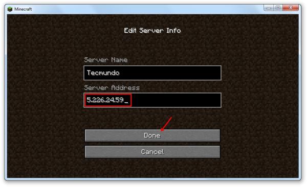 No próximo passo, entre no game, clique em Multiplayer > Add server, cole o endereço que você acabou de copiar no campo “Server Address” e pressione “Done”. O servidor vai passar a ser mostrado em sua lista de mundos, de forma semelhante ao modo single player. Por fim, clique nele duas vezes para entrar no mundo.