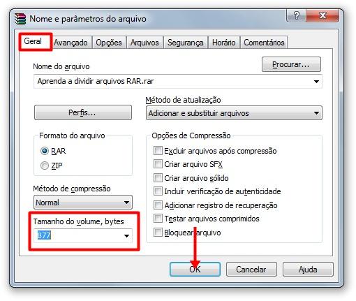 É válido salientar que o valor informado deve ser em bytes. Para que o WinRAR entre em ação e compacte o conteúdo escolhido em diversos arquivos compactados, basta você pressionar o botão “OK”. Pronto! Seus arquivos já estão do tamanho que você precisa e, o melhor, nem gritaram de dor.